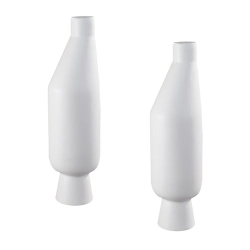 SOGA 2X 14x52cm Ornament White Minimalist Vases with Narrow Neck Rounded Body for Modern Home Decor